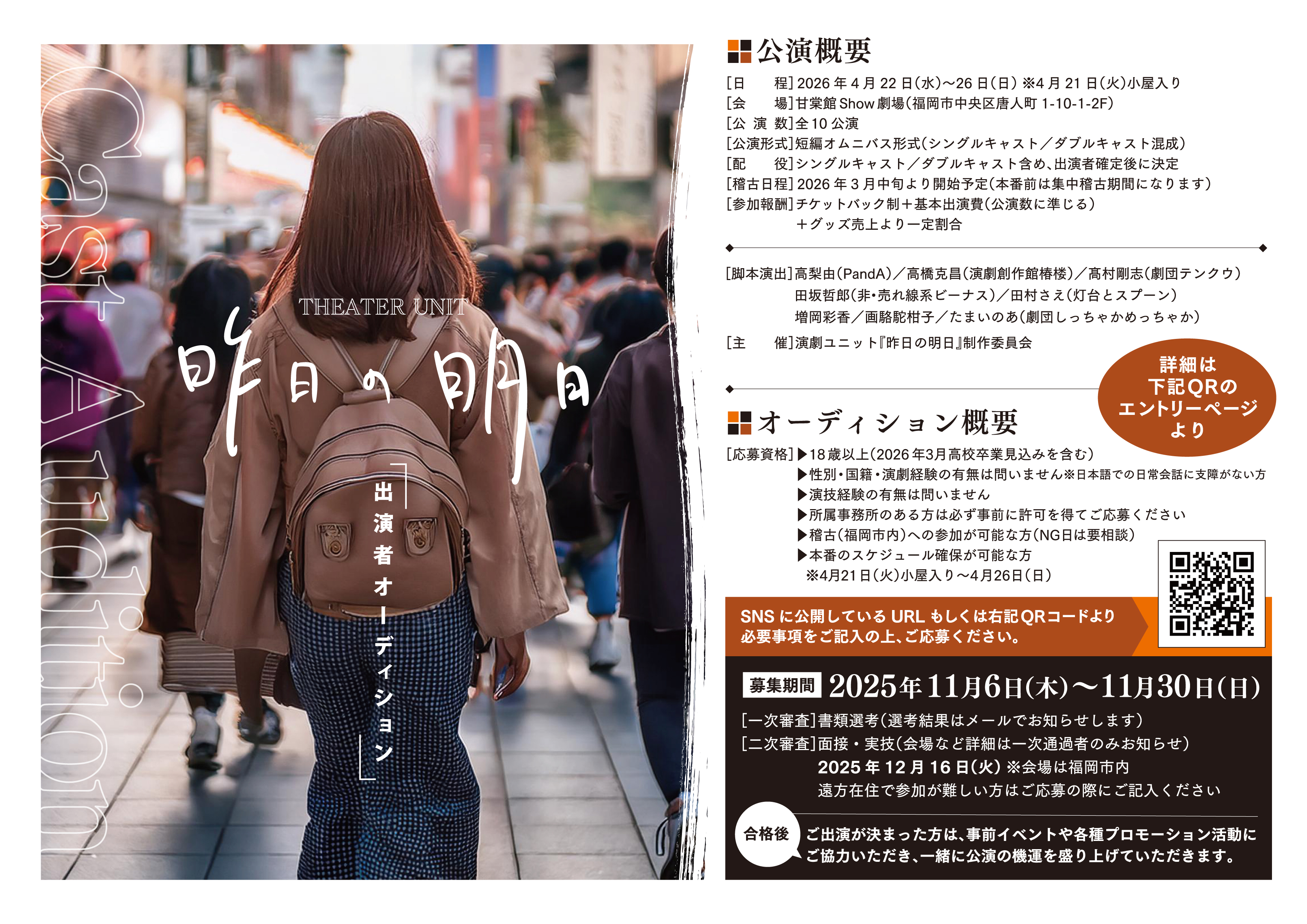 ![オーディション [福岡]演劇ユニット「昨日の明日」第2回公演 出演者オーディション 主催:演劇ユニット「昨日の明日」、カテゴリ:舞台](https://audition-plus.nerim.info/img/audition/audition-2025110748_w300.jpg?20251111181230)