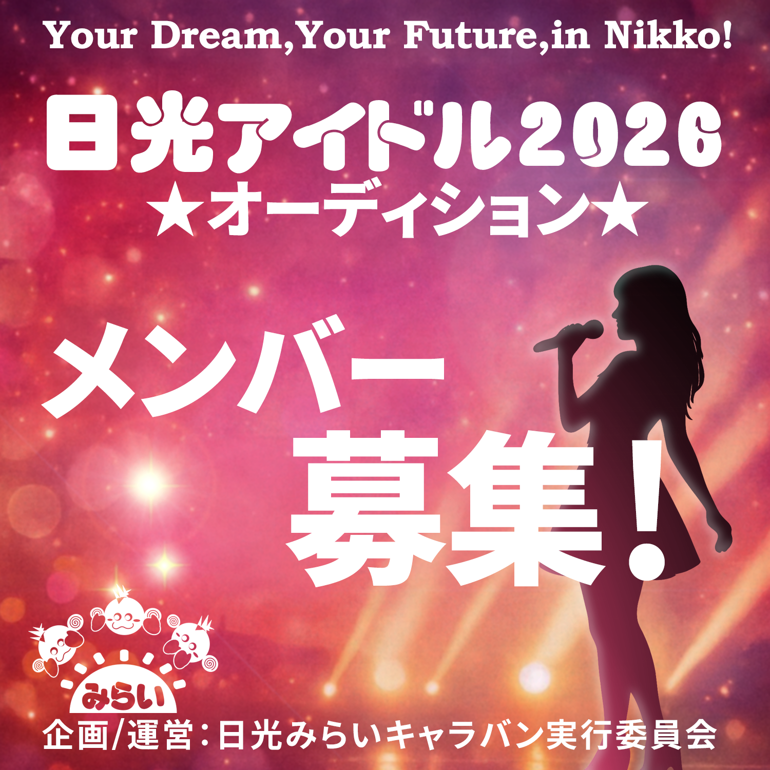 日光みらいキャラバン実行委員会では、2026年に始まる “日光ご当地アイドルプロジェクト” のメンバーを募集します。