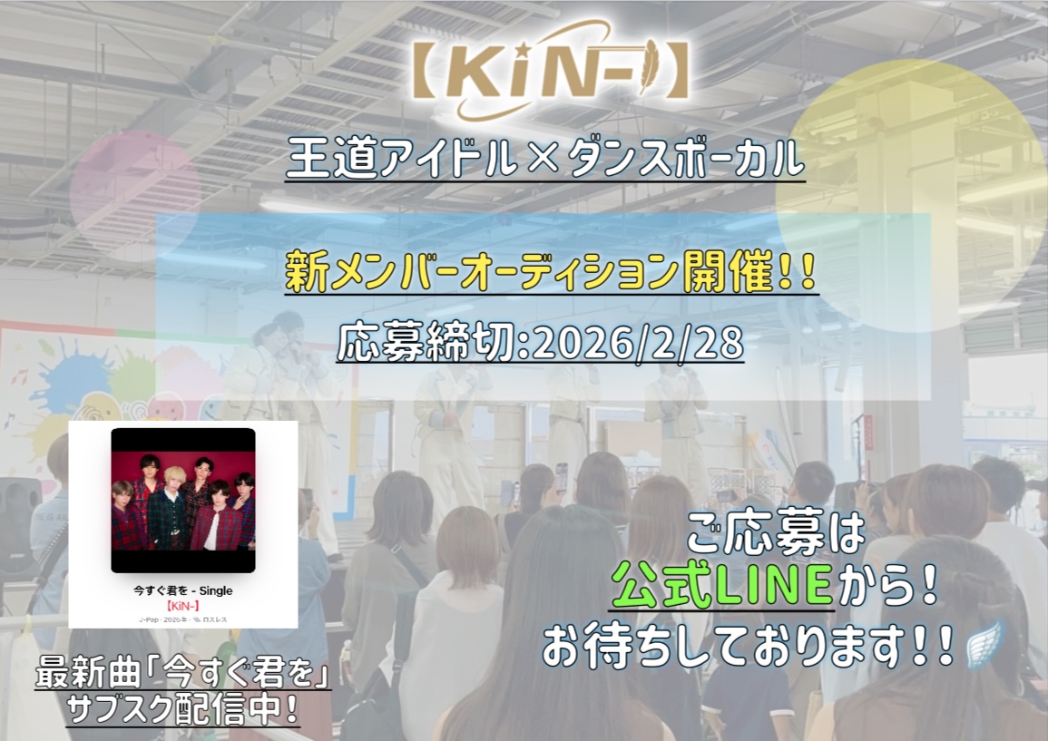 2025/5/18デビューのボーイズグループ【KiN-】新メンバーを募集します!