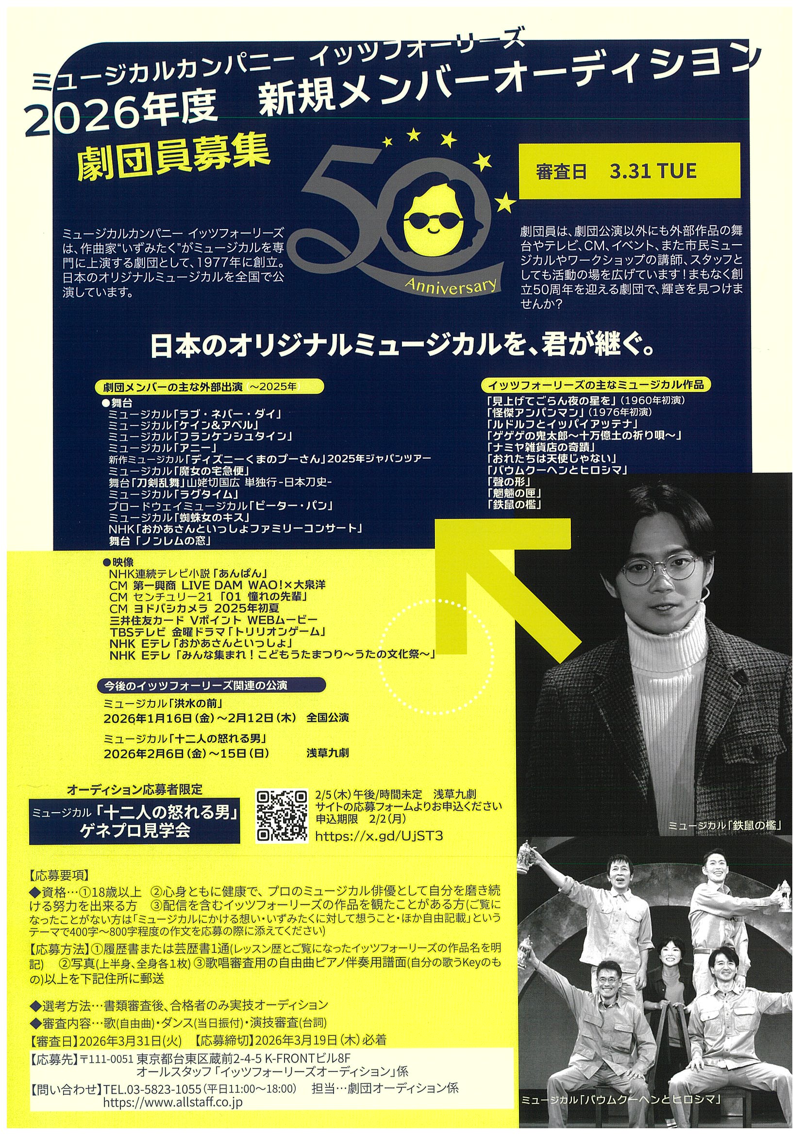 ミュージカルカンパニー イッツフォーリーズ 劇団員募集