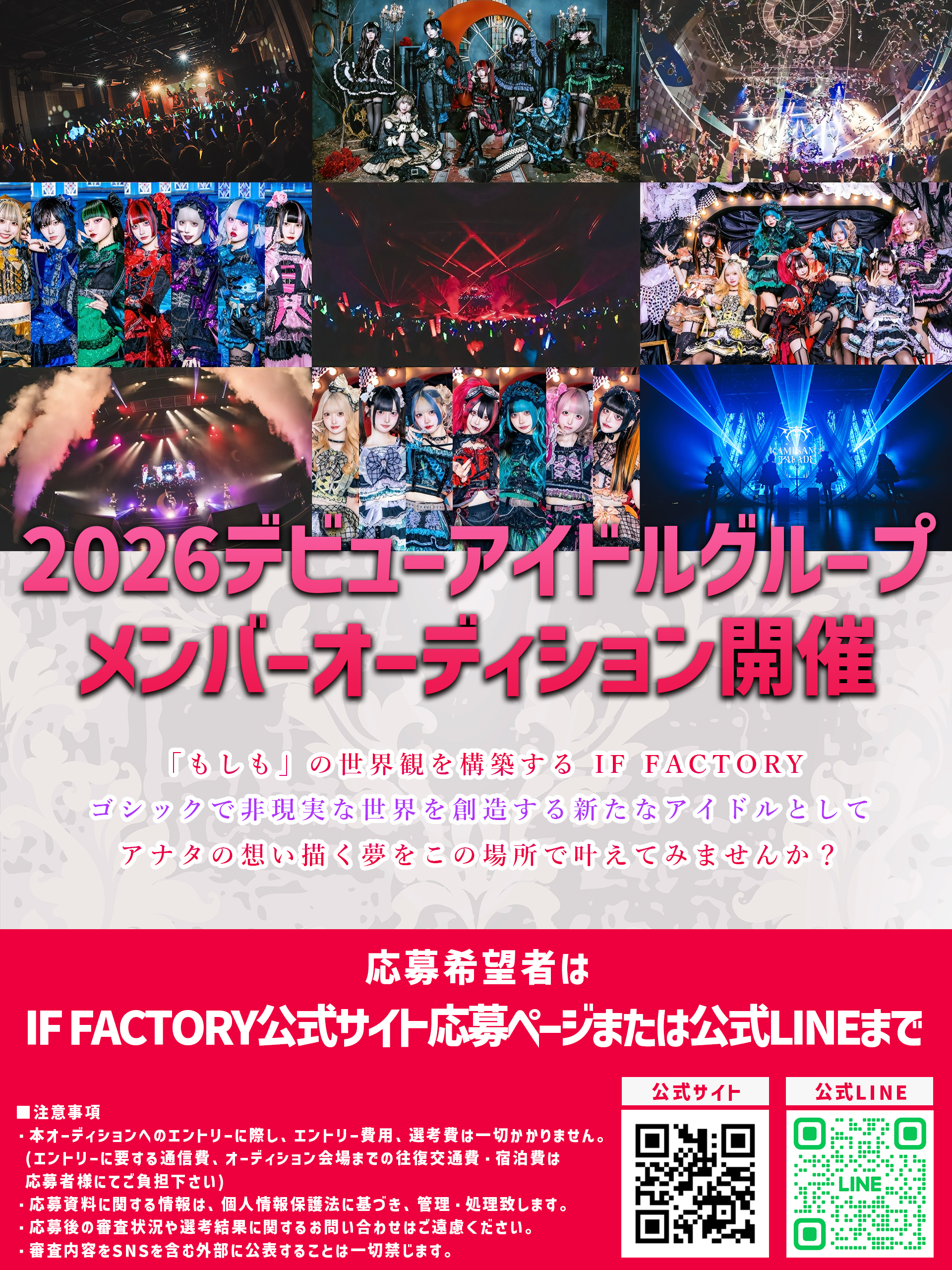 ミソラドエジソン、カミサマパレード、DIAVELが所属するIF FACTORYの新アイドルグループのメンバーを募集いたします。
