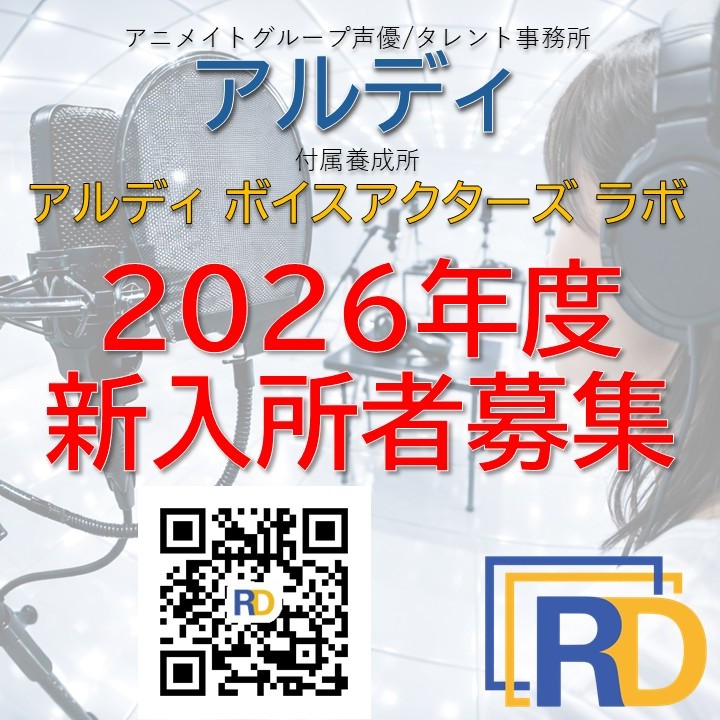 アニメイトグループ声優/Vライバー/タレント事務所「アルディ」及び附属声優養成所「アルディ ボイスアクターズ ラボ」では、2026年5月入所生を募集しております。
