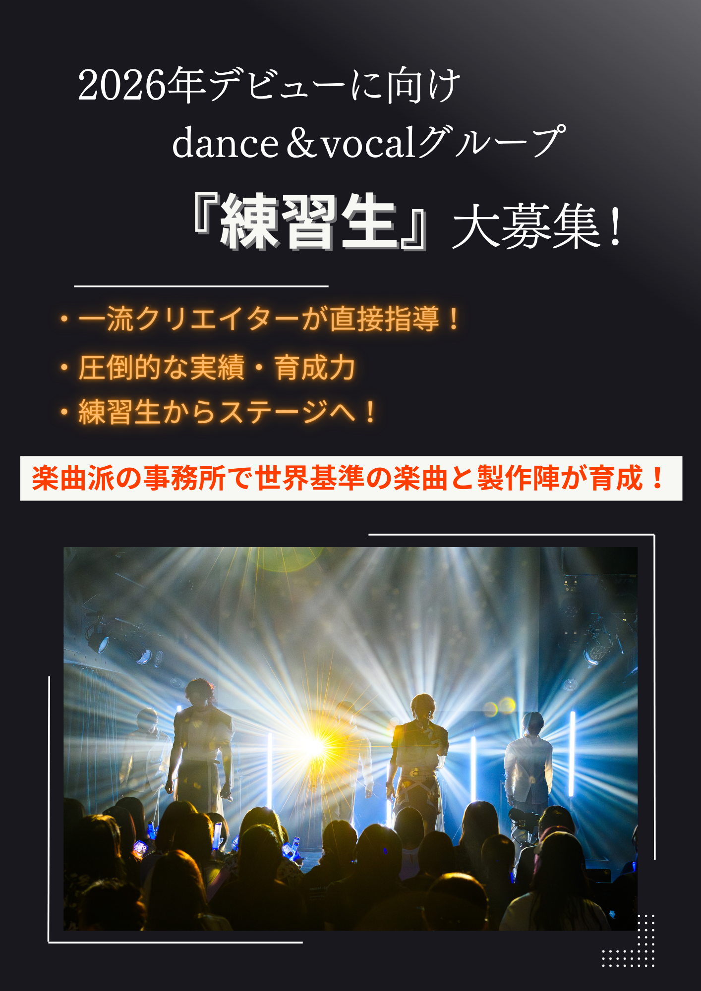 ・合格発表後ダンス・ボーカルレッスン(無料)開始。