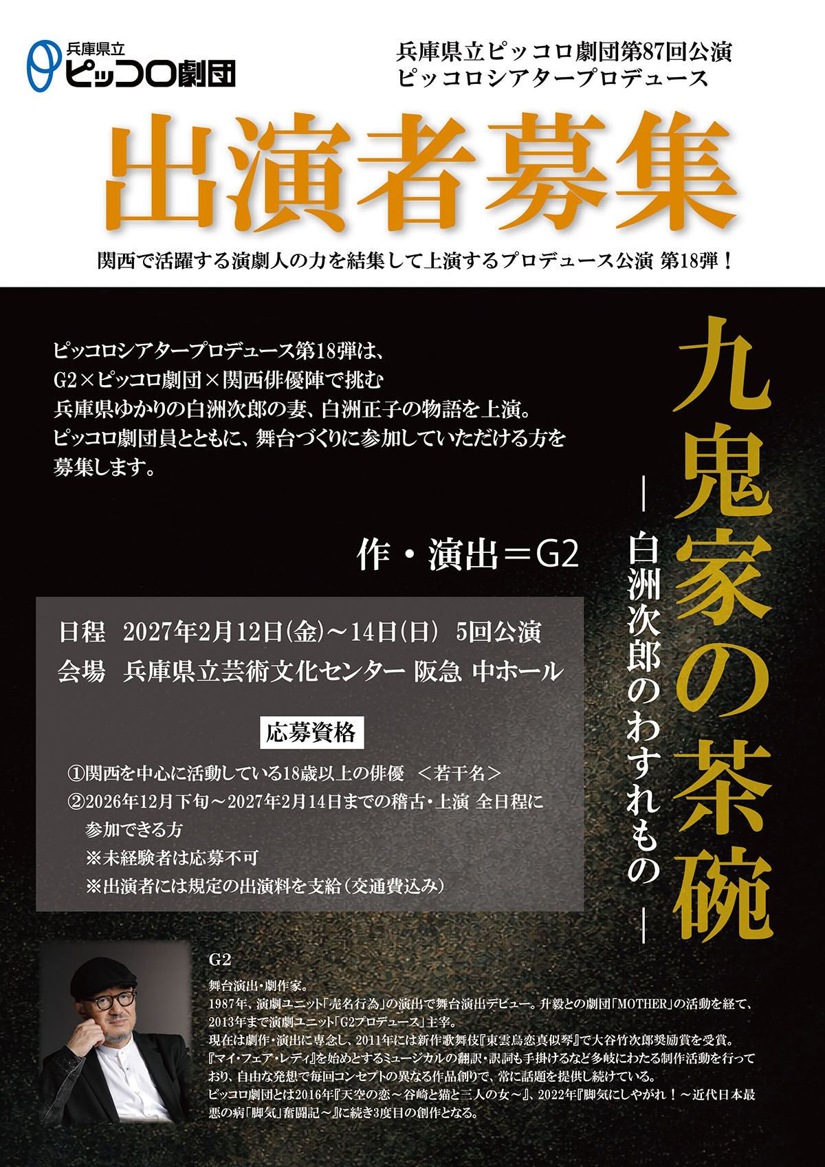 兵庫県立ピッコロ劇団「九鬼家の茶碗」出演者俳優オーディション係